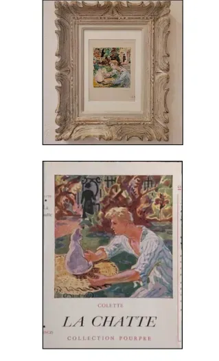 At Château La Tour Apollinaire, we take pride in our curated collection of exceptional artworks that reflect the richness and diversity of French artistic heritage. One of these treasures is a delicate watercolour by Jean Terles, created for the cover of one of France’s most famous female writers, Colette, and her 1933 novella, La Chatte.